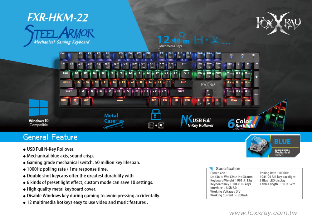 FXR-HKM-22 Steel Armor Mechanical Gaming Keyboard